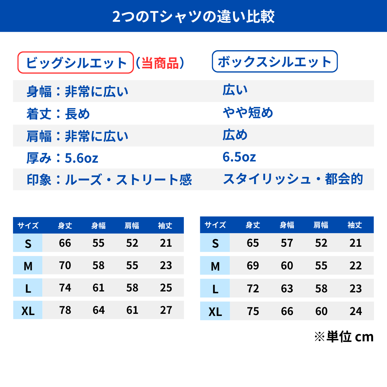 程よい厚みの5.6oz。ビッグシルエットは体型カバーとリラックス感を両立し、男女問わず人気で、1枚でも重ね着でも着回しやすい万能アイテムです。